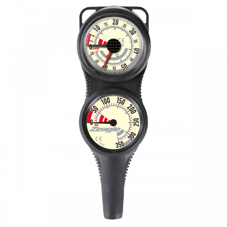 Zeagle Combo 2 Gauge ir perfekta izvēle nirējiem, kas meklē drošu, izturīgu un viegli nolasāmu spiediena un dziļuma mērītāju vienā ierīcē.