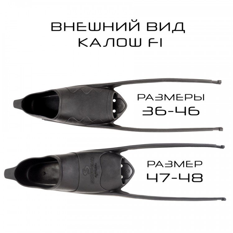 Scorpena F1 pleznu galošas ir saderīgas ar visām mūsu kolekcijā pieejamajām lapstiņām: Sport, Short, Soft, EcoLine, Elite, Apnea dažādās krāsās un cietībās, kā arī ar karbona lapstiņām Select, Apnea un Apnea Short.