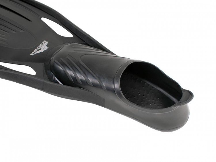 • Pēdu kabatas izgatavotas no mīksta materiāla, kas nenoslogo pēdu. Lapa ir ar nelielu leņķi, lai samazinātu slodzi uz pēdu ilgstošu peldēšanas laikā.