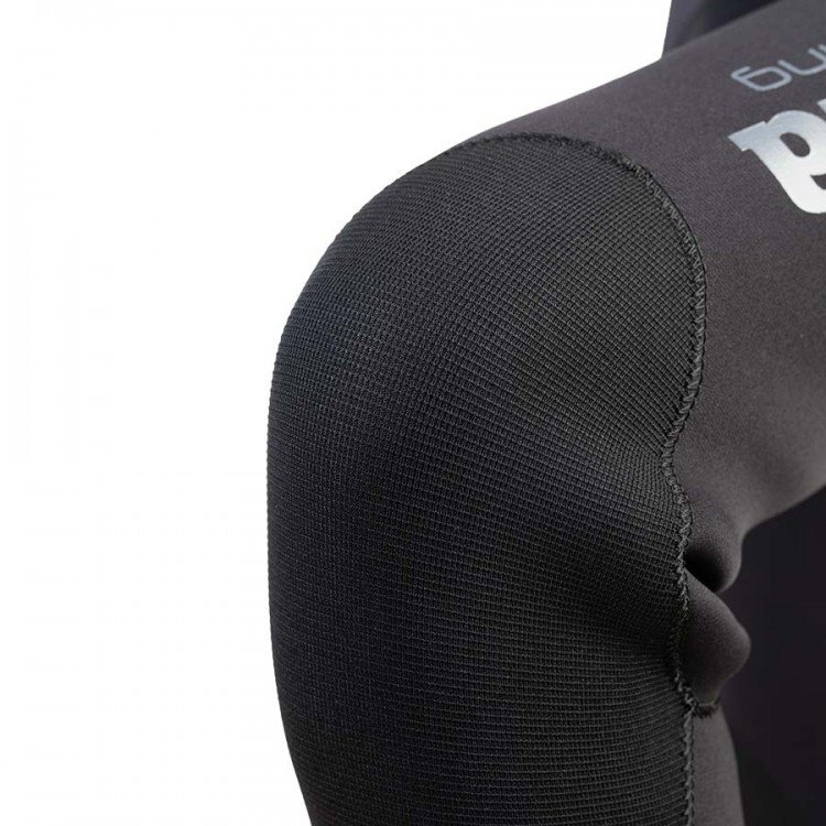 Jaka piegriezta tā, lai nodrošinātu ērtu piegulšanu. Iebūvētās kapuces priekšējā mala ir plānāka nekā pārējais neoprēns, lai nodrošinātu lielāku elastību. Glideskin pārklājums iekšpusē novērš ūdens iekļūšanu. Lai atvieglotu uzvilkšanu, kapuces galvenā iekšējā daļa ir pārklāta ar audumu. Jakas aizdare – dubultā klipša aizdare apakšējā atloka daļā.