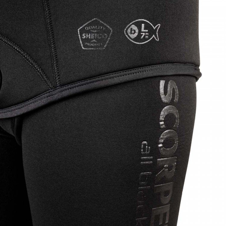 Scorpena All-Black hidrotērpi ir izgatavoti no izturīga, mīksta un videi draudzīga Sheico neoprēna, kas līmēts ar jaunu, uz ūdens bāzes izstrādātu līmi bez smaržas (bez ķīmiskiem šķīdinātājiem).
