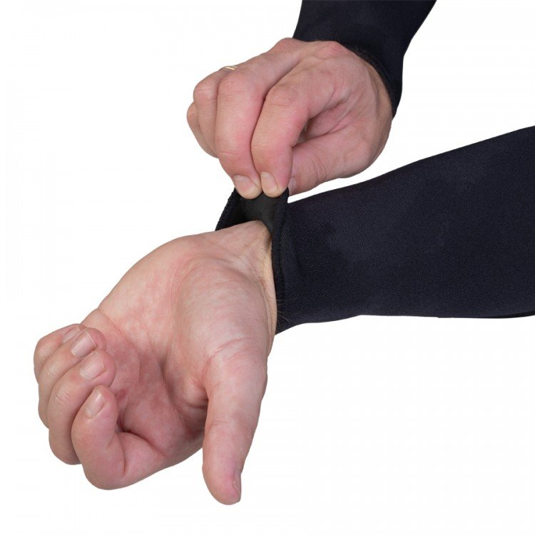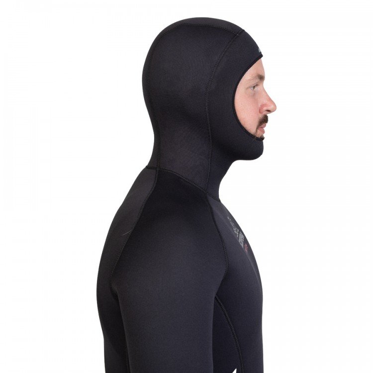 bikšu un kapuces malas ir apšūtas (overlock), lai novērstu hidrotērpa bojājumus gar malām.