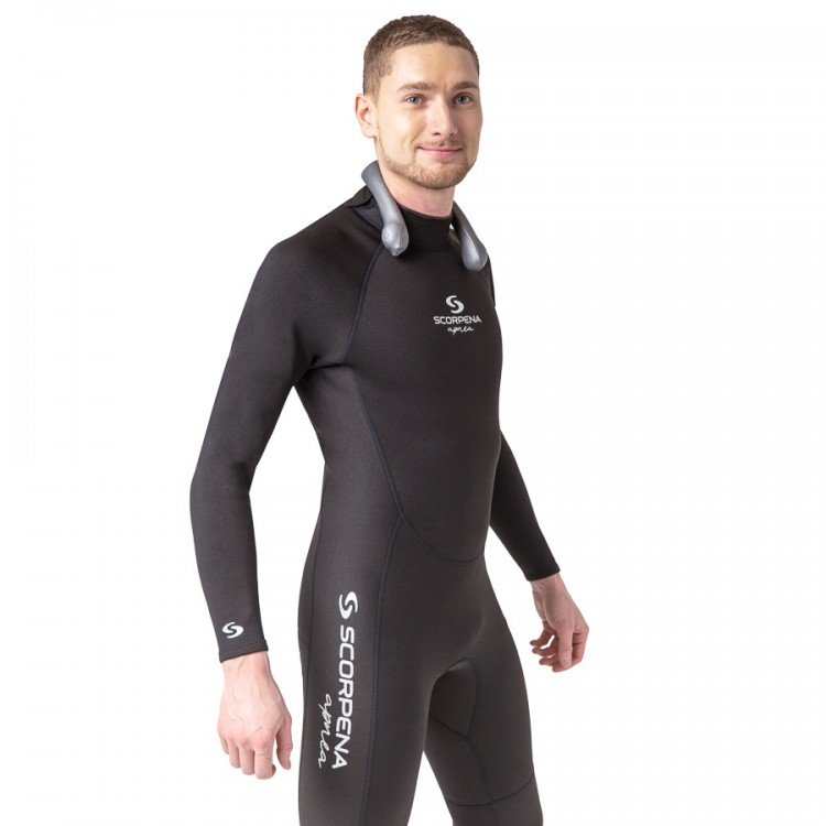 Scorpena Apnea F3/F4 hidrotērpi – ideāli piemēroti ūdens sportam un atpūtai gan atklātā ūdenī, gan baseinā Izgatavots no 1,5 mm neoprēna ar divpusēju neilona pārklājumu Elkoņu un ceļgalu zonas pārklātas ar poliuretāna diegiem, kas palielina elastību un netraucē kustībām Rāvējslēdzējs augšpusē pārklāts ar mīkstu Velcro aizdari, kas nodrošina ciešu piegulšanu ap kaklu Kakla daļa ar īpašu Aquastop pārklājumu novērš ūdens noplūdi un nodrošina papildu komfortu Paaugstināts un mīkstāks aizmugurējais kakla panelis īpaši svarīgi frīdaiveriem, kuri izmanto kakla atsvarusIzmantojiet izmēru tabulu zemāk, vai pērciet par vienu izmēru lielāku nekā parasto apģērbu