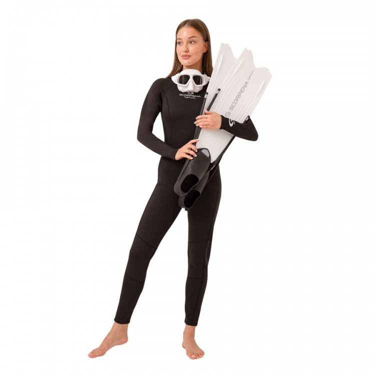 Scorpena Apnea F3/F4 hidrotērpi – ideāli piemēroti ūdens sportam un atpūtai gan atklātā ūdenī, gan baseinā Izgatavots no 1,5 mm neoprēna ar divpusēju neilona pārklājumu Elkoņu un ceļgalu zonas pārklātas ar poliuretāna diegiem, kas palielina elastību un netraucē kustībām Rāvējslēdzējs augšpusē pārklāts ar mīkstu Velcro aizdari, kas nodrošina ciešu piegulšanu ap kaklu Kakla daļa ar īpašu Aquastop pārklājumu novērš ūdens noplūdi un nodrošina papildu komfortu Paaugstināts un mīkstāks aizmugurējais kakla panelis īpaši svarīgi frīdaiveriem, kuri izmanto kakla atsvarusIzmantojiet izmēru tabulu zemāk, vai pērciet par vienu izmēru lielāku nekā parasto apģērbu