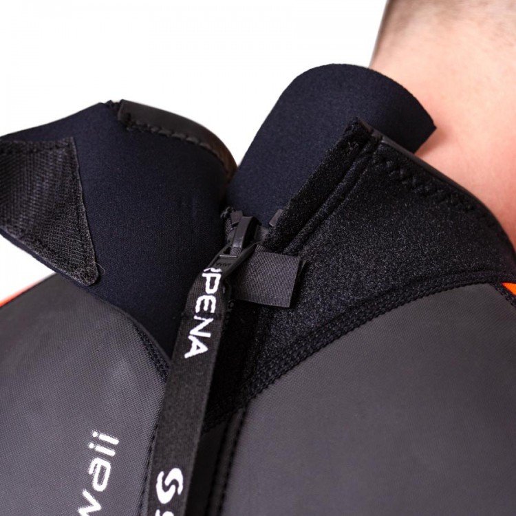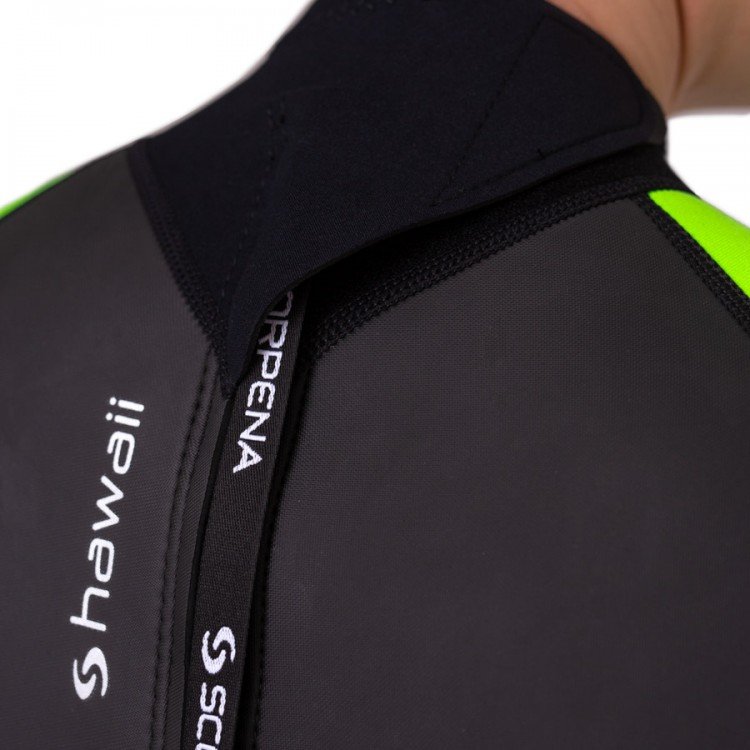Comfortable cut and flatlock seams provide high comfort when using Scorpena Hawaii. The wetsuits' collars feature special Glideskin neoprene, which provides the tightest and most comfortable fit, thus preventing water from entering the suit. And the adjustable Velcro closure allows for individual preferences in neck circumference.