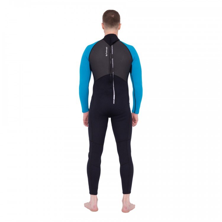 The suit is fastened with a vertically placed plastic zipper on the back, which is corrosion-resistant in salty seawater. For convenience, the zipper pull tab is equipped with a long loop with a textured surface.