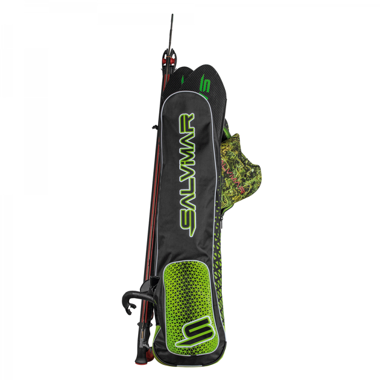 Mugursoma garām/profesionālām pleznām • Pusperimetrāla divvirzienu rāvējslēdzēja aizdare • Regulējama plecu siksna ērtai pārnēsāšanai • Izgatavota no izturīga un ūdensnecaurlaidīga neilona • Plata priekšējā kabata ar piekļuvi no trim pusēm Izmērs: 10 + 15 x 25 x 115 cm - Papildus informācija